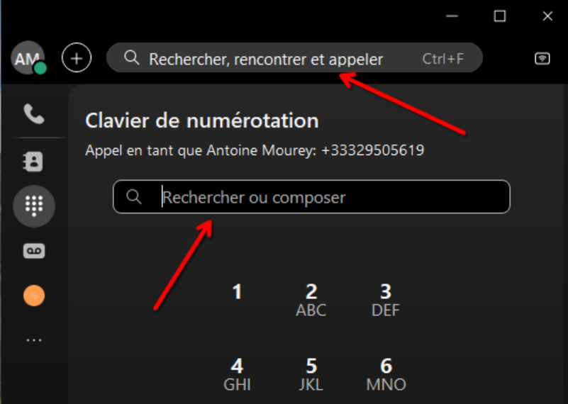 Dans l’onglet numérotation, vous pouvez simplement composer un appel avec le numéro complet sous la forme 0X XX XX XX XX.