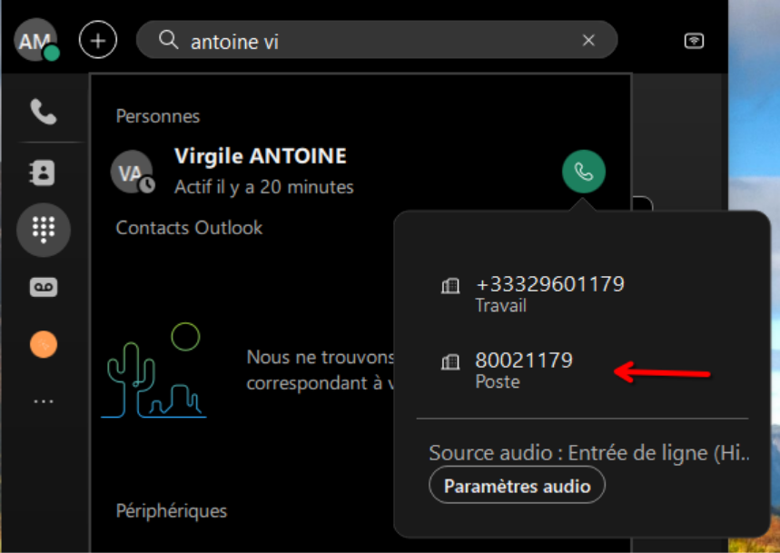 Ensuite, vous pouvez cliquer sur le téléphone vert et choisir d’appeler le numéro complet, soit le numéro court. (Préférez le numéro court)