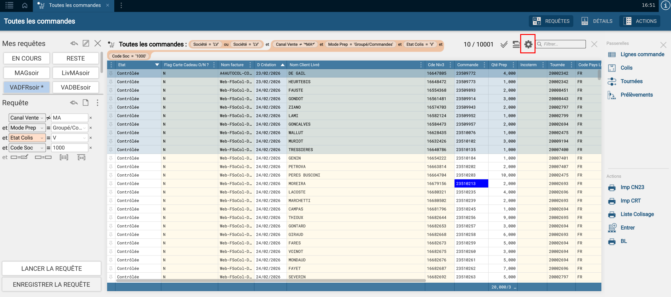 Pour cela une fois les données sélectionnées, cliquer sur la roue crantée
