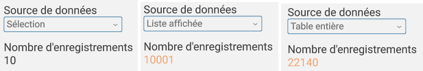 Si l’option Table entière est sélectionnée, la valeur indiquée peut être 0 (le temps que cela charge), mais certaines tables peuvent contenir plusieurs centaines de milliers de lignes. Dans ce cas, le traitement peut prendre beaucoup de temps.